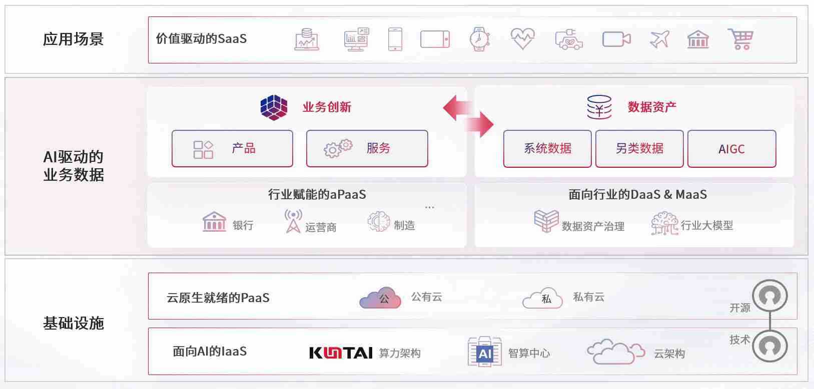 数字时代,,围绕企业数字化转型的关键要素,,,,PA视讯集团官网数码开创性的提出数云融合战略和技术体系框架,,,着力在云原生、、、、数字原生、、、AI原生和信创产业上架构产品和服务能力,,,为处在不同数字化转型阶段的快消零售、、、、汽车、、金融、、医疗、、、、政企、、、教育、、、、运营商等行业客户提供泛在的敏捷IT能力和融合的数据驱动能力,,,构建跨界融合创新的数字业务场景和新业务模式,,助力企业级客户建立面向未来的核心能力和竞争优势,,全面推动社会的数字化、、、、智能化转型升级。。。。